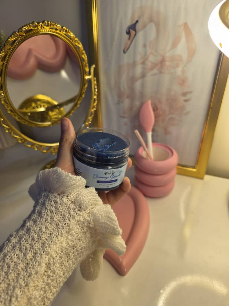 مقشر طبيعي للبشرة مستخلص من النيلة الزرقاء، مصمّم لتقشير الخلايا الميتة، تنظيف المسام، وتحسين مظهر البشرة لتصبح أكثر نعومة وإشراقاً. تركيبة غنية بالزيوت والخلاصات الطبيعية تساعد على تغذية البشرة وحمايتها أثناء التقشير.